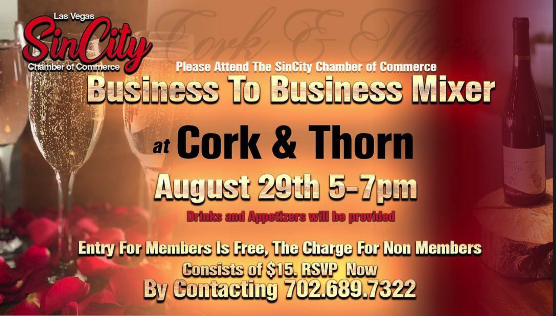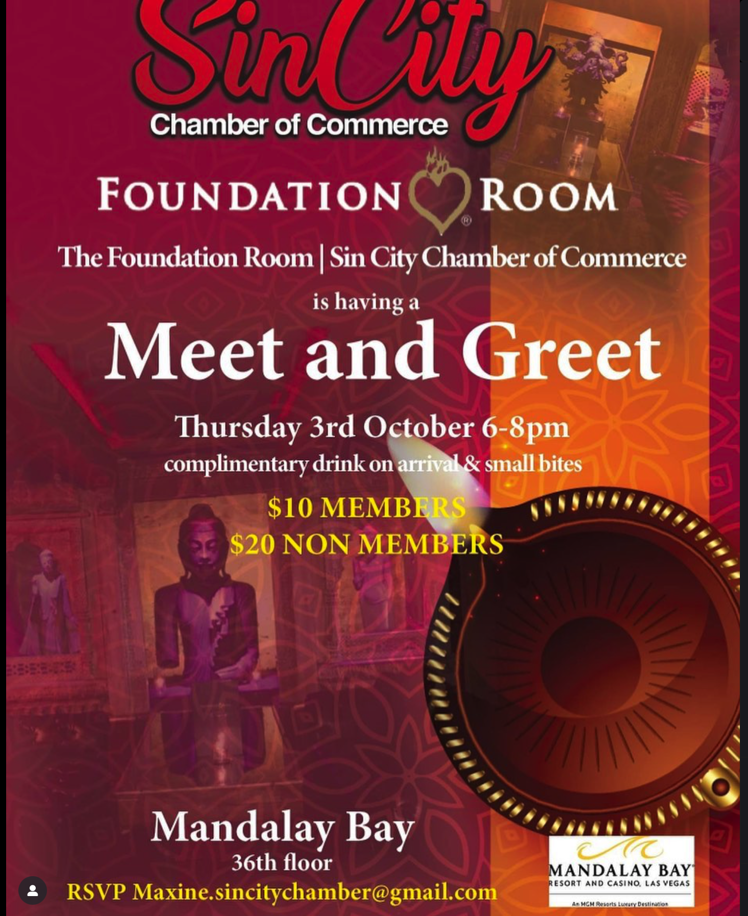 Sin City Chamber of Commerce will be holding a meet and greet at Mandalay Bay's Foundation Room located ib the 36th floor. $10 for members $20 for non-members